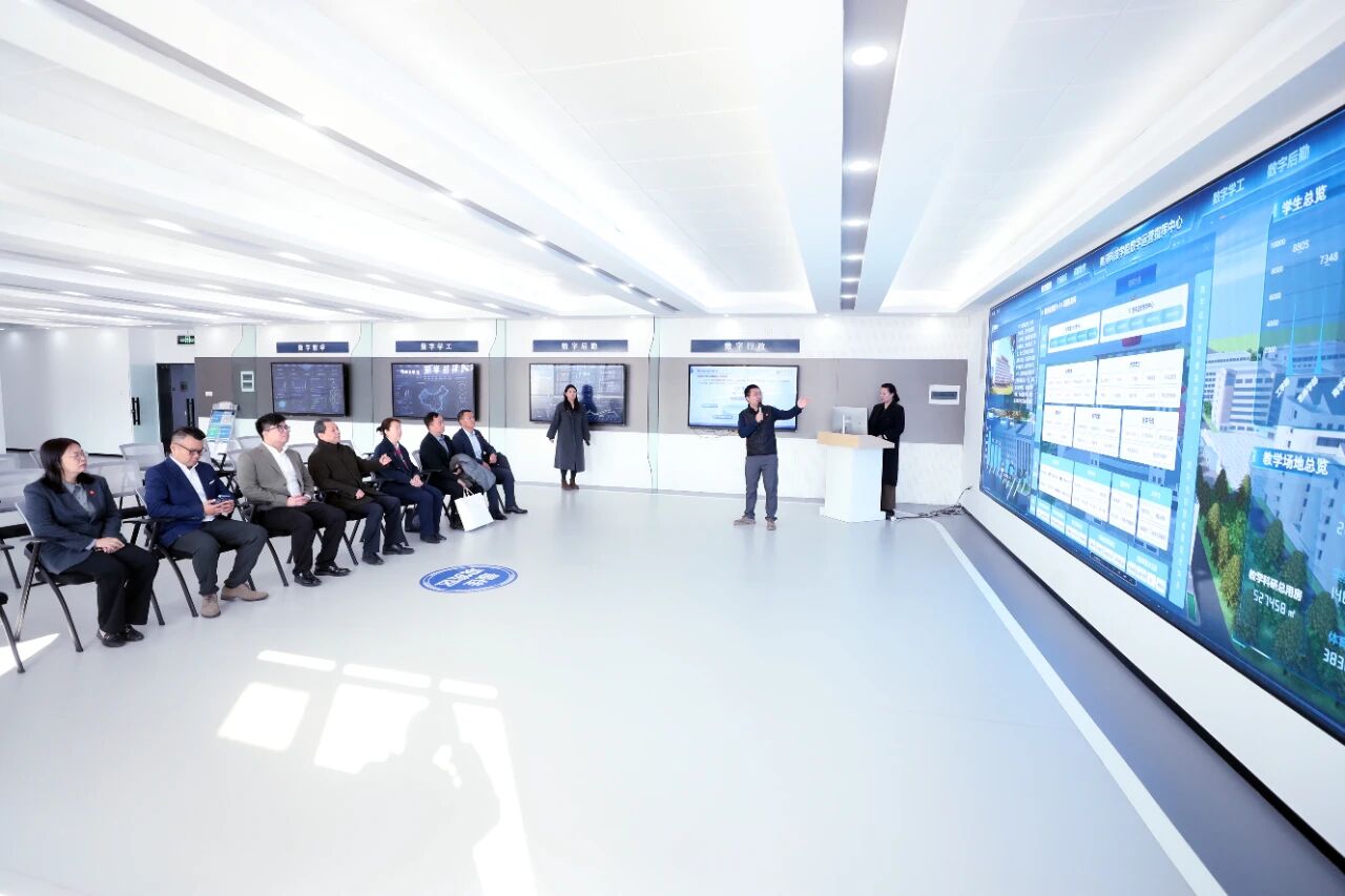 胡大白董事长介绍了学校的办学优势与特色。杨保成校长阐述了我校近年来创新提出的“产业教育化”理念,介绍学校围绕“1248”发展战略,在体制机制、教育教学、学生工作与数字化转型等四项改革方面的做法、成效与未来目标。曹丞曦主席对此表示高度认同,并指出双方在零碳校园建设、运动校园建设、学科制改革及未来大学目标四个方面存在诸多相似、相通之处,黄科大的办学精神、理念与创新实践值得学习。