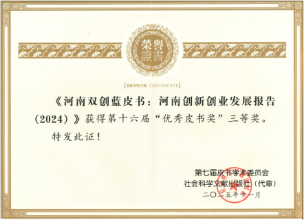 自2016年起,黄河科技学院河南中原创新发展研究院持续深耕创新创业领域研究,累计推出9本《河南双创蓝皮书》,系统梳理、多维呈现了河南推进创新创业的发展态势与丰硕成果,为河南培育发展新质生产力、践行中国式现代化河南实践提供了理论与决策依据。