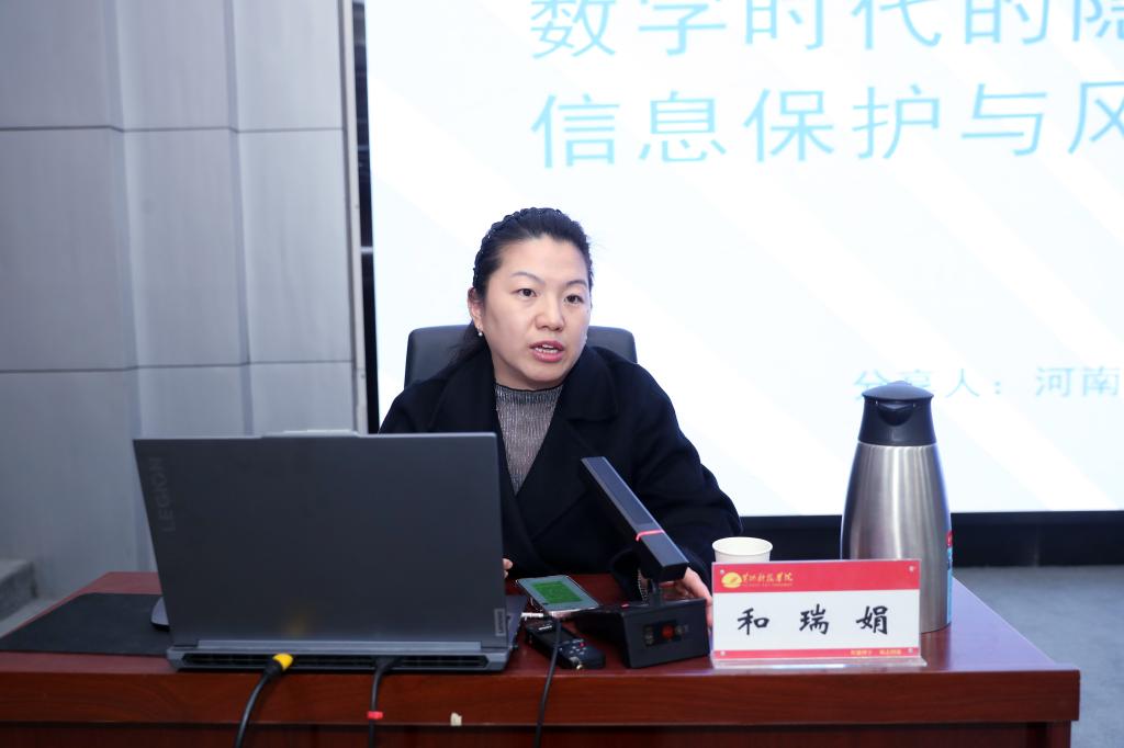 河南博颂律师事务所副主任和瑞娟以《个人信息保护及风险防范》为题,结合自身法律实务经验,围绕个人信息泄露途径、高风险行为警示、维权防护指南三大板块展开分享。她通过典型案例详细解读个人信息保护的法律边界,拆解数字生活中的信息安全隐患,并传授了实用的风险防范技巧与维权方法,为学子们送上了一堂干货满满的法律实务课。