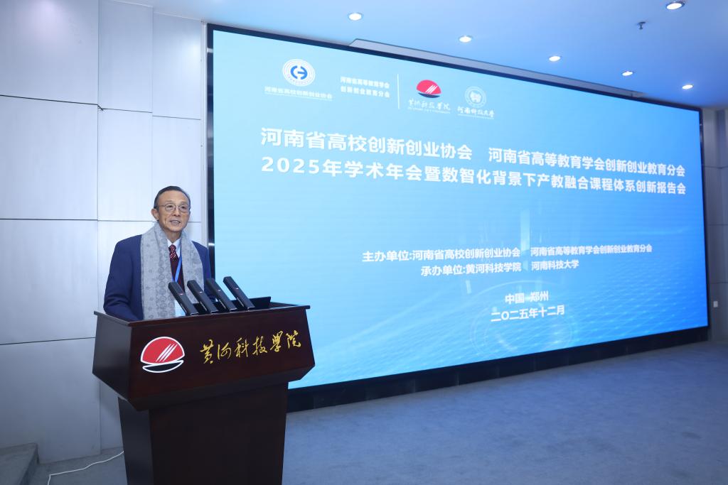 为深入学习贯彻习近平总书记给中国国际大学生创新大赛参赛学生代表的回信精神,全面落实党的二十届四中全会关于“促进科技自主创新和人才自主培养良性互动”的要求,衔接“十五五”时期教育科技人才一体发展战略部署,12月27日,河南省高校创新创业协会、河南省高等教育学会创新创业教育分会2025年学术年会暨数智化背景下产教融合课程体系创新报告会在黄河科技学院成功举办。