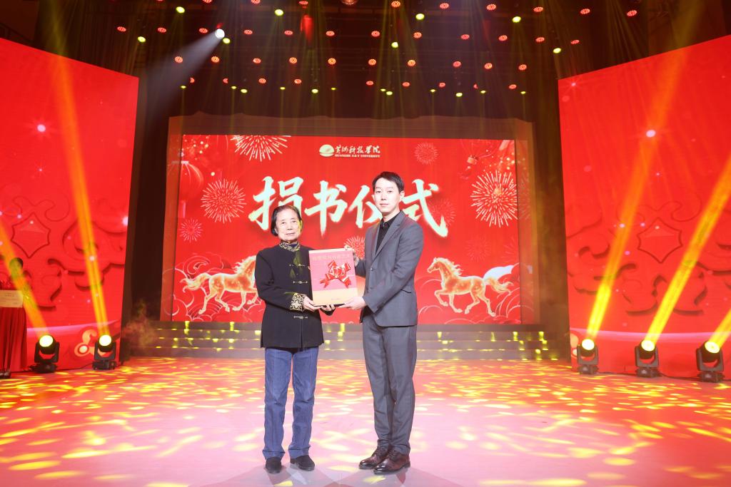 表彰大会结束后,现场举行了李宏博老师书画摄影集捐书仪式。黄河科技学院摄影研究所所长兼首席摄影师李宏博老师,将其精心拍摄并编纂的大型书画摄影集《姚雪垠与书画艺术——李宏博摄影集》向学校捐赠50册。该作品由新华出版社出版发行,已被国家图书馆、清华大学图书馆、北京大学图书馆等多家权威机构收藏,具有重要的艺术价值和文献意义。胡大白董事长代表学校接受捐赠,现场以热烈掌声向李宏博老师致以诚挚感谢。