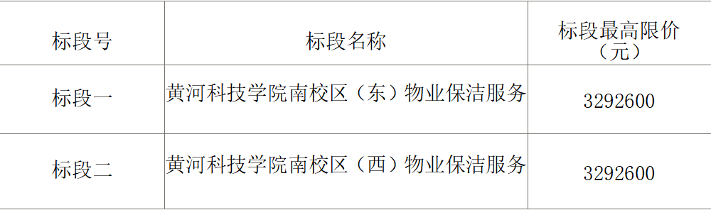 标段二为黄河科技学院南校区(西)的物业保洁服务,包括16栋学生楼、12栋教工楼、14栋教学及办公楼、9个场馆、2个餐厅及外围区域。