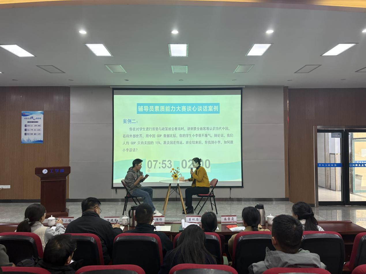 11月14日下午,谈心谈话环节顺利开展。现场学生真实模拟了思想困惑、学业压力、生活难题等成长过程中的常见问题。参赛辅导员结合学生特点,遵循育人规律,通过耐心倾听、真诚沟通和科学引导,有效化解学生困惑,展现“用心育人、以爱执教”的工作理念,搭建起师生心灵沟通的桥梁。