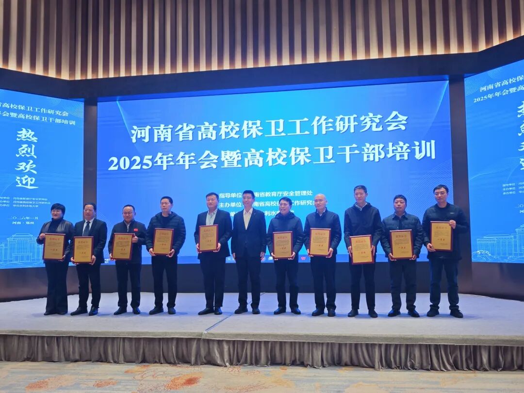1月16日,由河南省教育厅安全管理处指导举办的河南省高校保卫工作研究会2025年年会暨高校保卫干部培训会议在郑州顺利举行,河南省教育厅副厅长陈凯出席会议并讲话。会上表彰了2025年度河南省高校校园安全管理工作优秀论文,我校荣获一等奖1项、二等奖1项,彰显了学校在校园安全理论研究与实践探索方面的扎实成效。