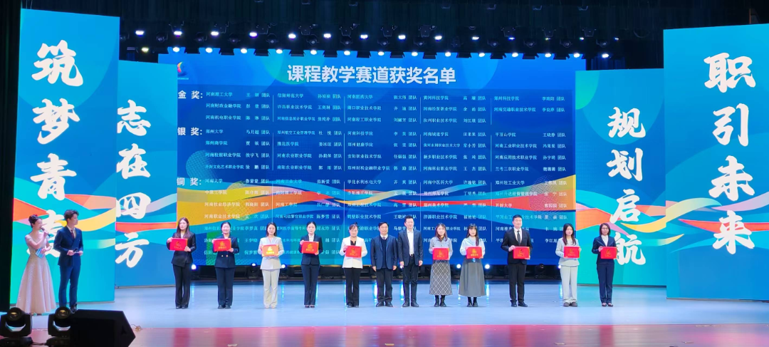 赛事进程中,各赛道比赛有序开展。2025年11月22日至23日,课程教学赛道决赛在河南经贸职业学院率先打响,高珊教师团队凭借严谨的教学思路、完善的课程体系和精彩的现场答辩,从全省百余支队伍中脱颖而出,斩获金奖,彰显了我校就业指导课程建设的扎实基础与鲜明特色。随后,2026年1月26日至27日,高教组成长赛道决赛在洛阳师范学院举办,就业赛道决赛在洛阳理工学院举办,我校参赛学子紧扣国家战略与社会需求,结合专业所长规划职业路径,以清晰的思路、自信的表达赢得评委认可,最终摘得2银4铜的佳绩。