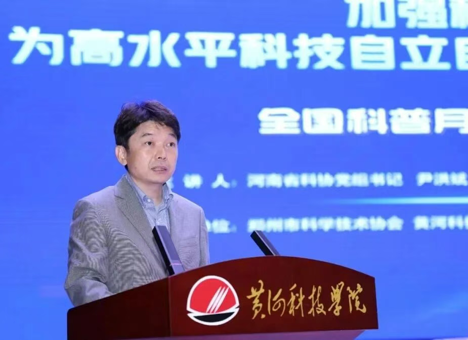 报告会在庄重而热烈的氛围中开始。我校执行董事、校长杨保成首先致辞,对尹洪斌书记及各位领导的到来表示热烈欢迎,并简要介绍了学校的办学历程以及在科技创新与科学普及方面取得的成果。他表示,学校将继续深化科普品牌建设,打造具有黄河科技学院特色的科普高地,为河南省科技事业贡献力量。