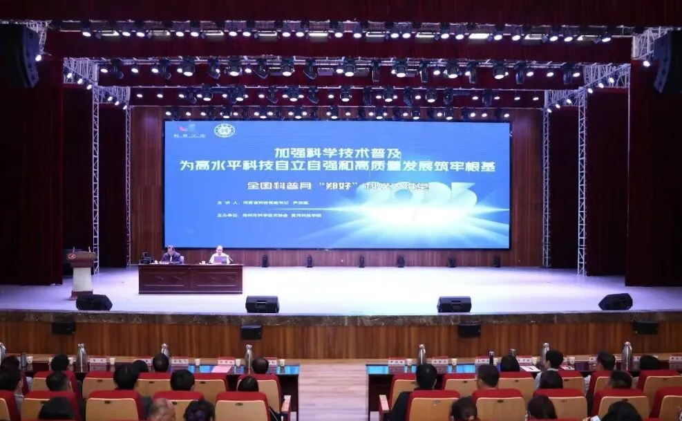 9月18日下午,“郑好”科学大讲堂在我校艺术中心成功举办。河南省科协党组书记尹洪斌应邀出席,并作题为《加强科学技术普及 为高水平科技自立自强和高质量发展筑牢根基》的专题报告。河南省科协科普部,郑州市科协、各区县(市)科协相关负责人,科技工作者、企事业科协、学会、科普教育基地代表;杨保成、孔留安、赵卫东等校领导,师生代表等共计450余人参加报告会。