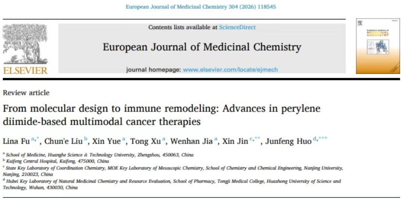 近日,我校医学部付丽娜副教授(第一作者兼通讯作者),南京大学金鑫博士及华中科技大学同济医学院霍俊峰博士(共同通讯作者)团队联合在国际权威期刊《European Journal of Medicinal Chemistry》(IF:5.9)发表题为“From molecular design to immune remodeling: Advances in perylene diimide-based multimodal cancer therapies” 的重磅综述论文,这标志着我校医学部在癌症多模态治疗领域的研究达到国际前沿水平,也彰显...