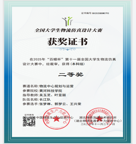 我校学子在2025年“百蝶杯”第十一届全国大学生物流仿真设计大赛荣获二等奖