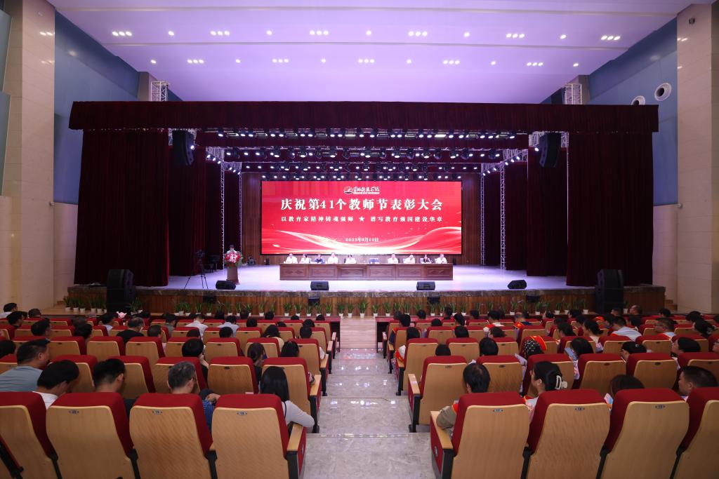 弦歌不辍,薪火相传;桃李芬芳,感念师恩。为向全体教师致以诚挚的节日问候,凝聚推动学校高质量发展的向心力,表彰教育教学中的先进典型,大力弘扬尊师重教的良好风尚,进一步增强教师的职业荣誉感与使命担当,激励全体教职员工传承并发扬黄科大精神,在建设一流应用科技大学的征程中奋勇争先。9 月 10 日,黄河科技学院在艺术中心隆重举办庆祝第41个教师节表彰大会,以庄重而温情的仪式,礼赞躬耕教坛的师者荣光。校领导胡大...