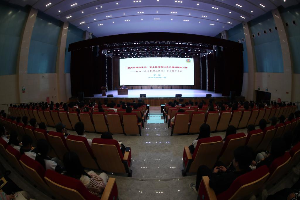 为进一步提升师生法治素养,增强青少年法治意识与社会责任感,10月17日,校党委委员、副校长罗煜以“一部关乎百姓生活、安全秩序和社会治理的基本法律”为题,为职业技术学院师生作治安管理处罚法专题法治教育报告,报告会由职业技术学院院长李萍主持。罗煜重点介绍了我国治安管理处罚法的历史沿革、立法目的、适用范围、新法核心变化与主要亮点、条文要义、学习宣传贯彻等内容,聚焦社会治理热点和青少年成长、学生工作、校园...