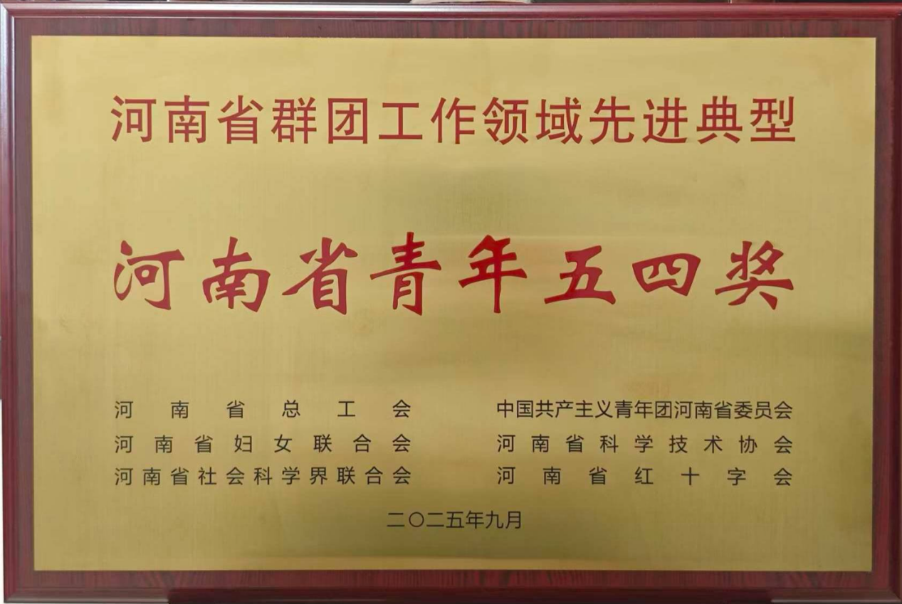 近日,共青团河南省委、河南省科学技术协会、河南省社会科学界联合会联合公布了2025年河南省青年五四奖章评选结果。我校团委获评“河南省青年五四奖”荣誉称号。一直以来,学校团委始终坚持以习近平新时代中国特色社会主义思想为指导,深入贯彻落实党的二十大和二十届二中、三中全会精神,全面贯彻习近平总书记关于青年工作的重要思想,聚焦立德树人根本任务,主动融入学校发展战略,围绕人才培养中心工作,在思想引领、实践育...
