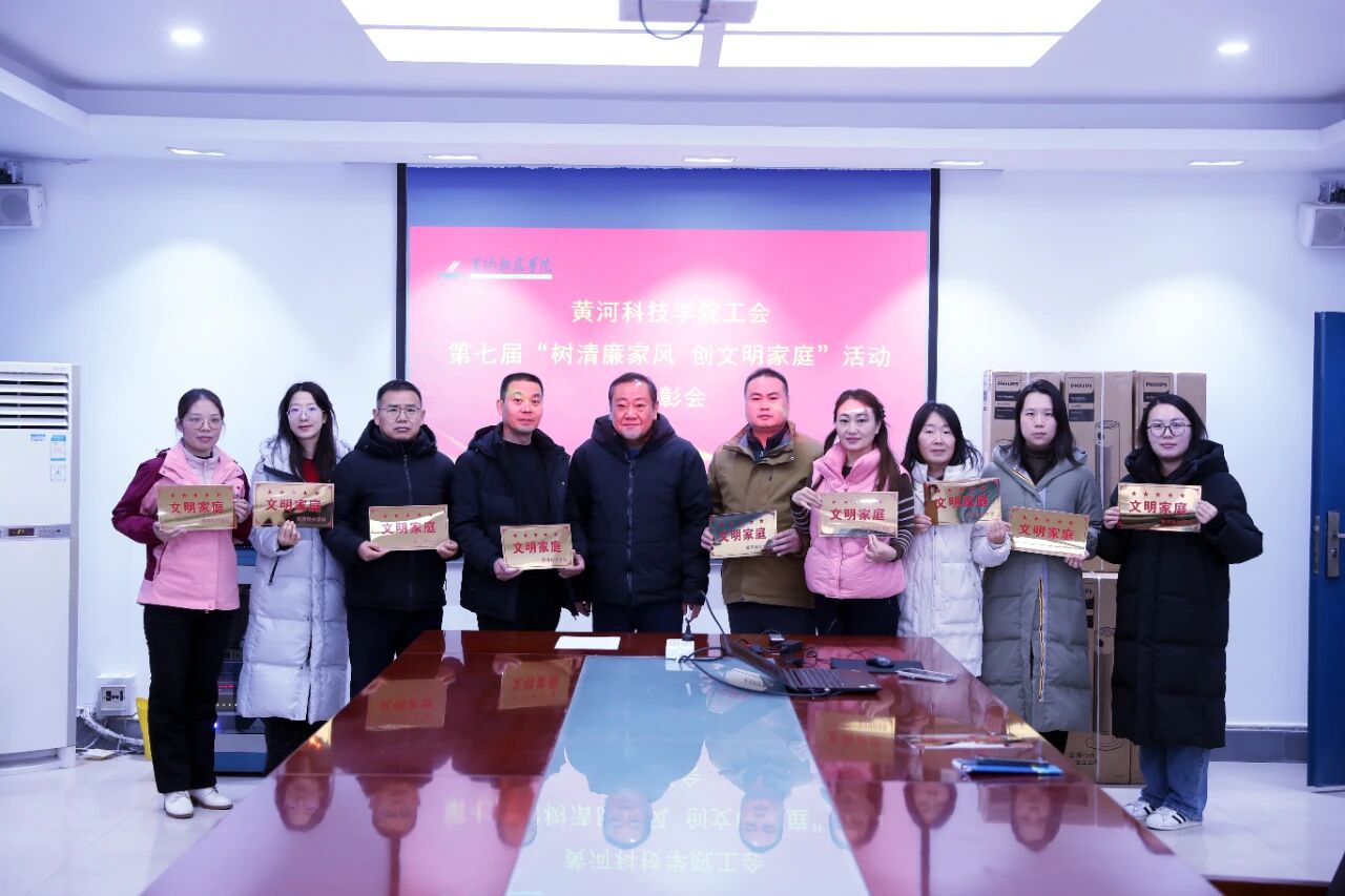 为深入推进学校精神文明建设,弘扬优良家风,12月22日,黄河科技学院工会对第七届“树清廉家风 创文明家庭”主题活动中评选出的9户“文明家庭”予以表彰,王建、常荣、雷舒舰等9户教职工家庭凭借良好的家风传承、和谐的家庭氛围及积极的示范作用,从全校众多教职工家庭中脱颖而出,获此殊荣。校工会主席陈勇民出席表彰活动,并为获奖家庭颁发奖品。据悉,本次“树清廉家风 创文明家庭”主题活动是落实《中共黄河科技学院委员会 ...