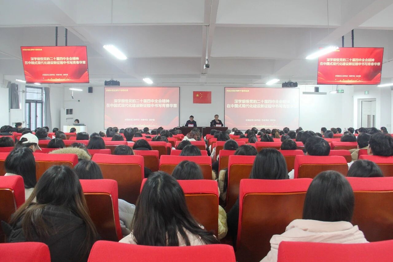 12月29日下午,济源产城融合示范区党工委书记、市委书记徐衣显走进应用技术学院讲授思政课,向广大师生宣讲党的二十届四中全会精神。我校特聘专家孔留安主持,示范区党工委委员、管委会副主任、副市长俞益民,我校特聘专家孔凡士,学生中心主任、应用技术学院党委书记张丕万,应用技术学院院长徐斌出席,应用技术学院党员师生代表现场聆听授课。徐衣显以《深学细悟党的二十届四中全会精神在中国式现代化建设新征程中书写青春华...
